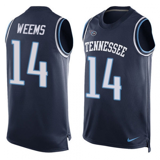 Men's Nike Tennessee Titans #14 Eric Weems Limited Navy Blue Player Name & Number Tank Top Tank Top NFL Jersey