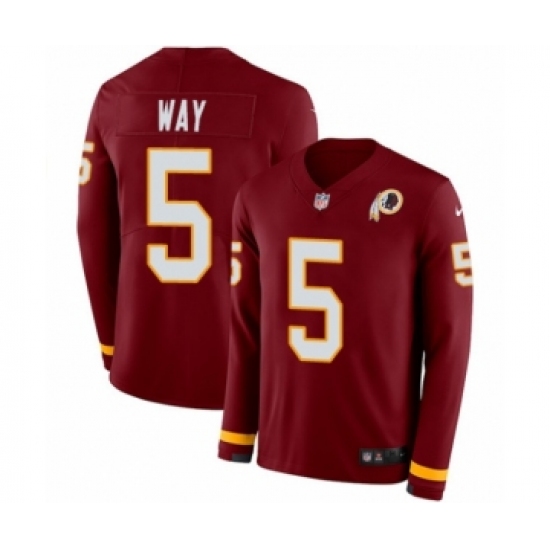 >Men's Nike Washington Redskins #5 Tress Way Limited Burgundy Therma Long Sleeve NFL Jersey