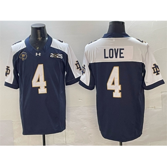 >Men's Notre Dame Fighting Irish #4 Jeremiyah Love Navy Alternate F.U.S.E. 2025 CFP Final Limited Stitched Football Jersey