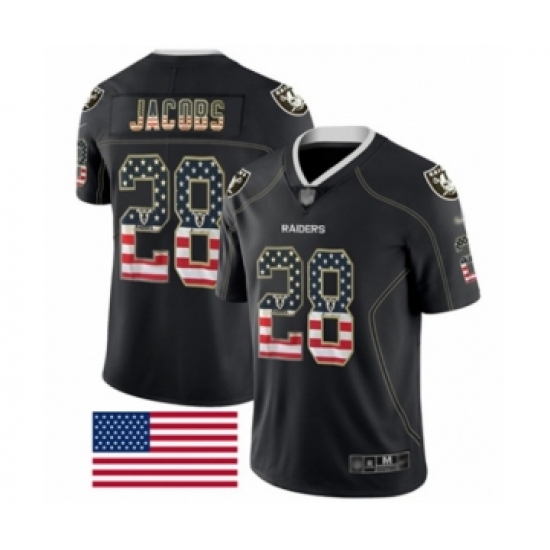 >Men's Oakland Raiders #28 Josh Jacobs Black USA Flag Fashion Limited Football Jersey