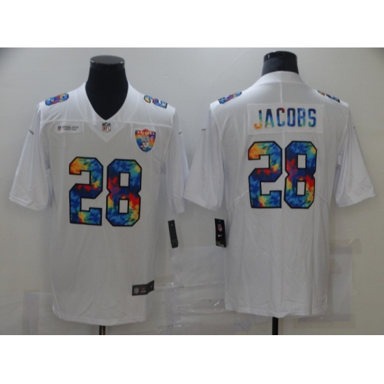 Men's Oakland Raiders #28 Josh Jacobs White Rainbow Version Nike Leopard Jersey