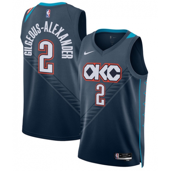 Men's Oklahoma City Thunder #2 Shai Gilgeous-Alexander Navy 2025-26 City Edition Swingman Stitched Basketball Jersey