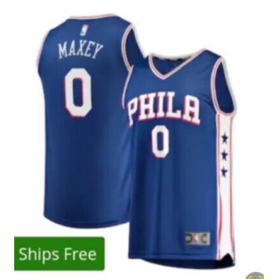 Men's Philadelphia 76ers #0 Tyrese Maxey Blue City Player Jersey