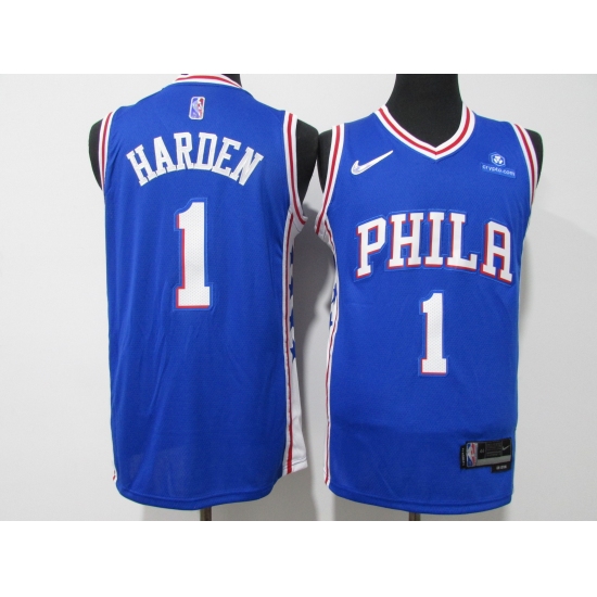 Men's Philadelphia 76ers #1 James Harden Blue 75th Anniversary Association Edition Swingman Stitched Jersey
