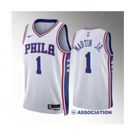 Men's Philadelphia 76ers #1 Kenyon Martin Jr White Association Edition Stitched Jersey