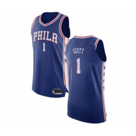 >Men's Philadelphia 76ers #1 Mike Scott Authentic Blue Basketball Jersey - Icon Edition