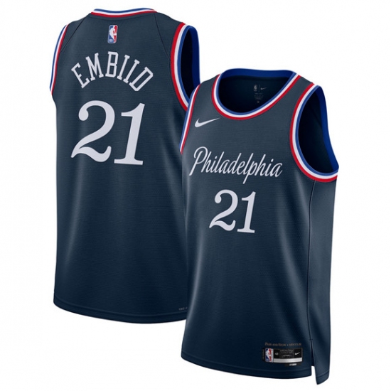 Men's Philadelphia 76ers #21 Joel Embiid Navy 2025-26 City Edition Swingman Stitched Jersey