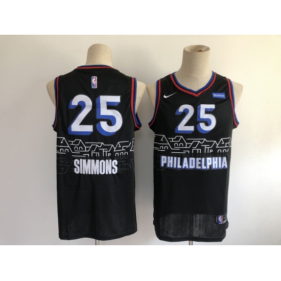 >Men's Philadelphia 76ers #25 Ben Simmons Nike Black 2020-21 Swingman Jersey