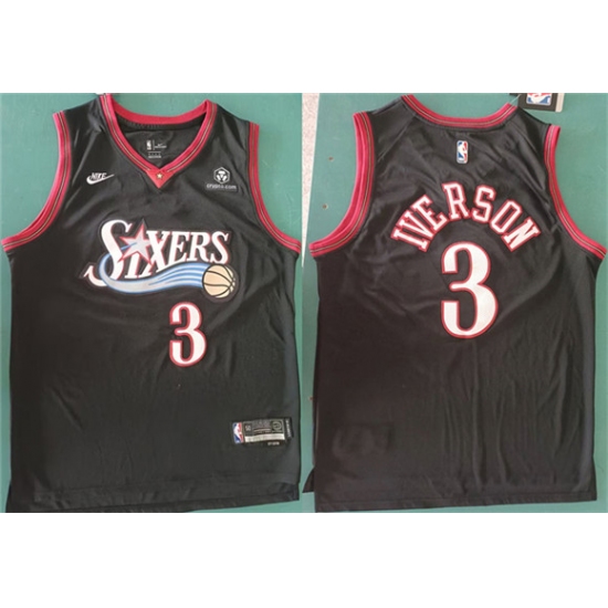 >Men's Philadelphia 76ers #3 Allen Iverson Black 2025 Classic Edition Stitched Stitched Jersey