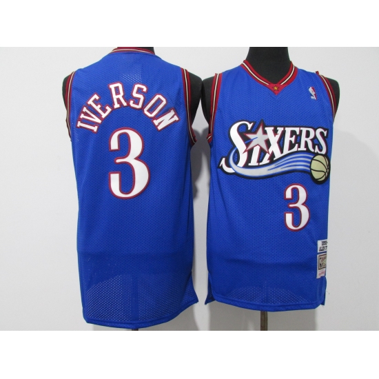 Men's Philadelphia 76ers #3 Allen Iverson Blue Throwback Basketbal Jersey