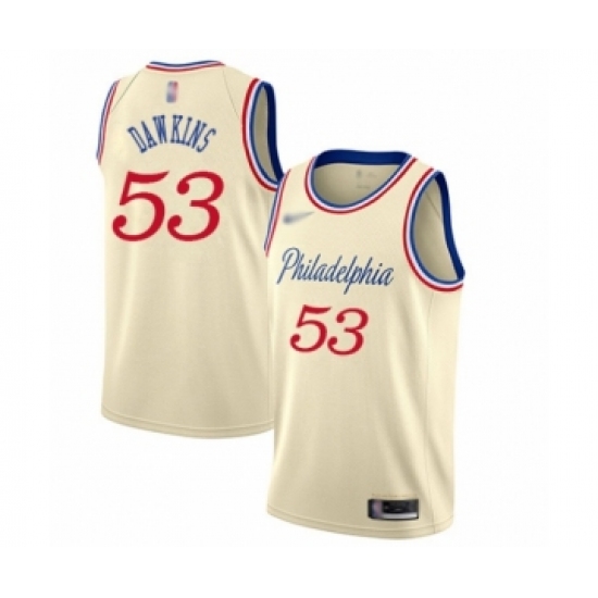 >Men's Philadelphia 76ers #53 Darryl Dawkins Swingman Cream Basketball Jersey - 2019 20 City Edition