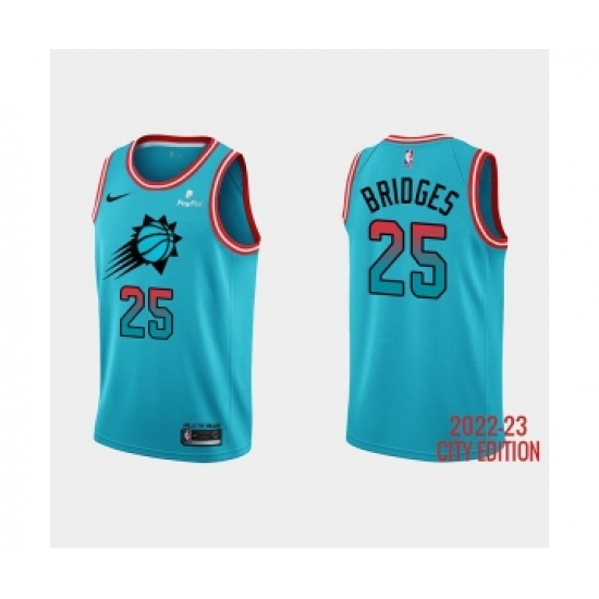 >Men's Phoenix Suns #25 Mikal Bridges 2022-23 Blue City Edition Stitched Basketball Jersey
