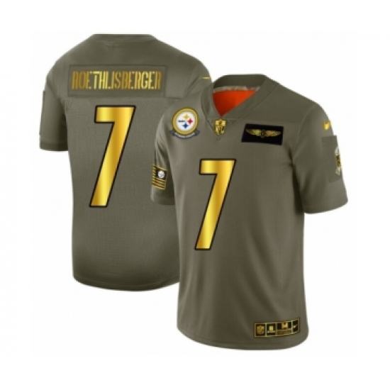 >Men's Pittsburgh Steelers #7 Ben Roethlisberger Limited Olive Gold 2019 Salute to Service Football Jersey
