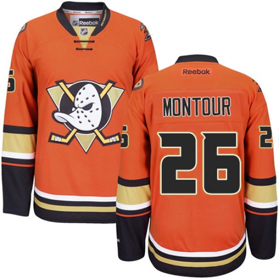 Men's Reebok Anaheim Ducks #26 Brandon Montour Authentic Orange Third NHL Jersey