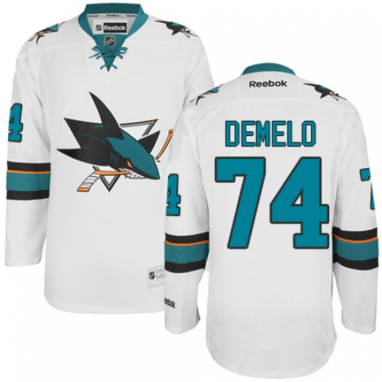Home>NHL>San Jose Sharks>Dylan DeMelo>Men's Reebok San Jose Sharks #74 Dylan DeMelo Authentic White Away NHL Jersey