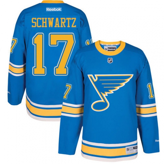 Home>NHL>St. Louis Blues>Jaden Schwartz>Men's Reebok St. Louis Blues #17 Jaden Schwartz Premier Blue 2017 Winter Classic NHL Jersey