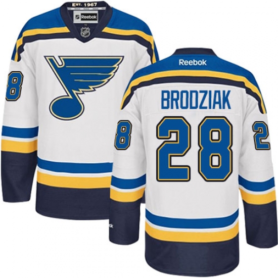 Home>NHL>St. Louis Blues>Kyle Brodziak>Men's Reebok St. Louis Blues #28 Kyle Brodziak Authentic White Away NHL Jersey