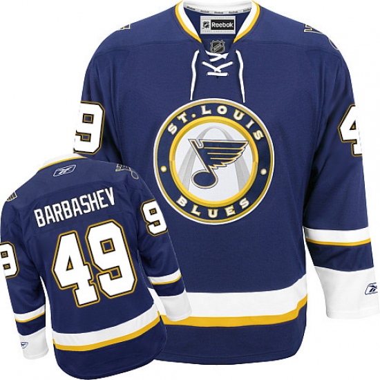 Home>NHL>St. Louis Blues>Ivan Barbashev>Men's Reebok St. Louis Blues #49 Ivan Barbashev Premier Navy Blue Third NHL Jersey