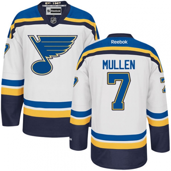 Home>NHL>St. Louis Blues>Joe Mullen>Men's Reebok St. Louis Blues #7 Joe Mullen Authentic White Away NHL Jersey