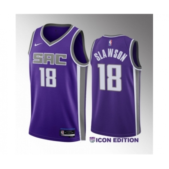 Men's Sacramento Kings #18 Jalen Slawson Purple 2023 Draft Icon Edition Stitched Jersey