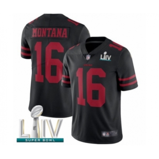 >Men's San Francisco 49ers #16 Joe Montana Black Alternate Vapor Untouchable Limited Player Super Bowl LIV Bound Football Jersey