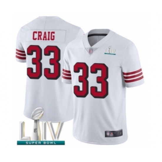 >Men's San Francisco 49ers #33 Roger Craig Limited White Rush Vapor Untouchable Super Bowl LIV Bound Football Jersey