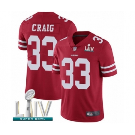 Men's San Francisco 49ers #33 Roger Craig Red Team Color Vapor Untouchable Limited Player Super Bowl LIV Bound Football Jersey