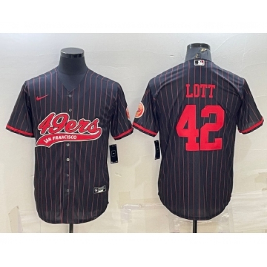 Men's San Francisco 49ers #42 Ronnie Lott Black Pinstripe With Patch Cool Base Stitched Baseball Jersey