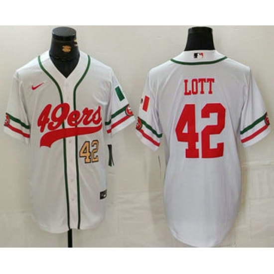 Men's San Francisco 49ers #42 Ronnie Lott Number White Mexico Cool Base Stitched Baseball Jersey