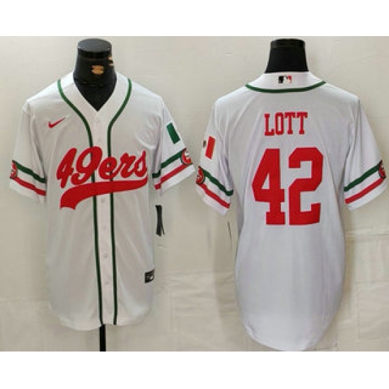 Men's San Francisco 49ers #42 Ronnie Lott White Mexico Cool Base Stitched Baseball Jersey