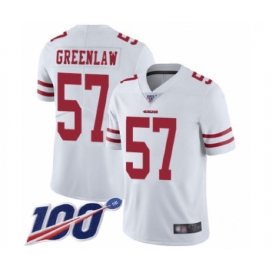 Men's San Francisco 49ers #57 Dre Greenlaw White Vapor Untouchable Limited Player 100th Season Football Jersey