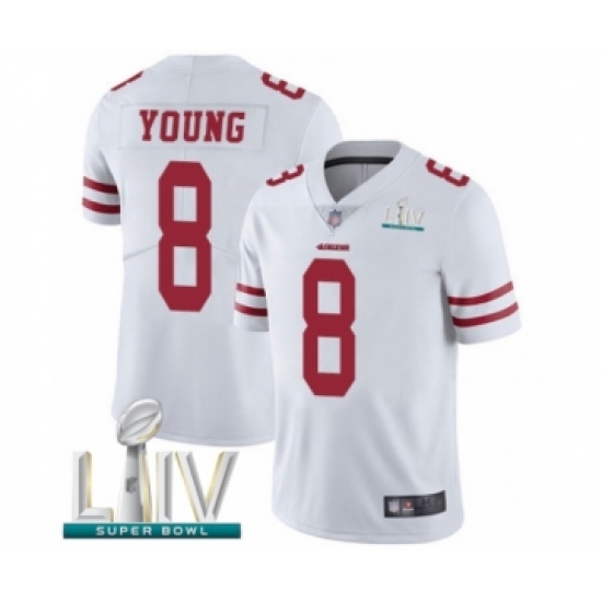 >Men's San Francisco 49ers #8 Steve Young White Vapor Untouchable Limited Player Super Bowl LIV Bound Football Jerse