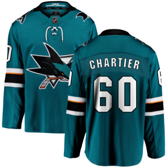 Home>NHL>San Jose Sharks>Rourke Chartier>Men's San Jose Sharks #60 Rourke Chartier Fanatics Branded Teal Green Home Breakaway NHL Jersey