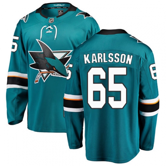 >Men's San Jose Sharks #65 Erik Karlsson Fanatics Branded Teal Green Home Breakaway NHL Jersey