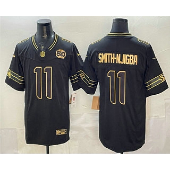 Men's Seattle Seahawks #11 Jaxon Smith-Njigba Black Gold 2025 FUSE 50th Season Limited Stitched Jersey