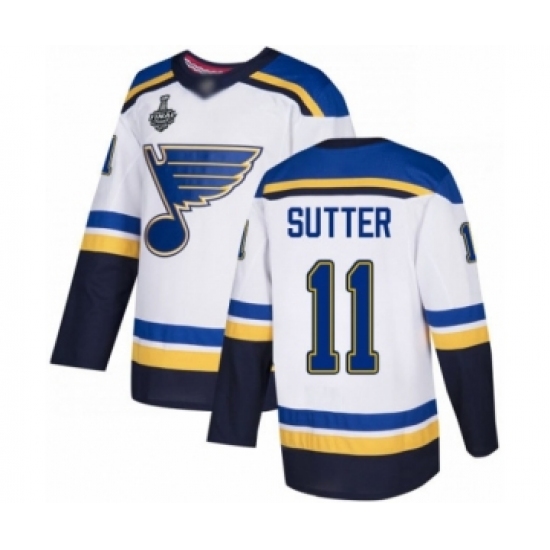 Men's St. Louis Blues #11 Brian Sutter Authentic White Away 2019 Stanley Cup Final Bound Hockey Jersey