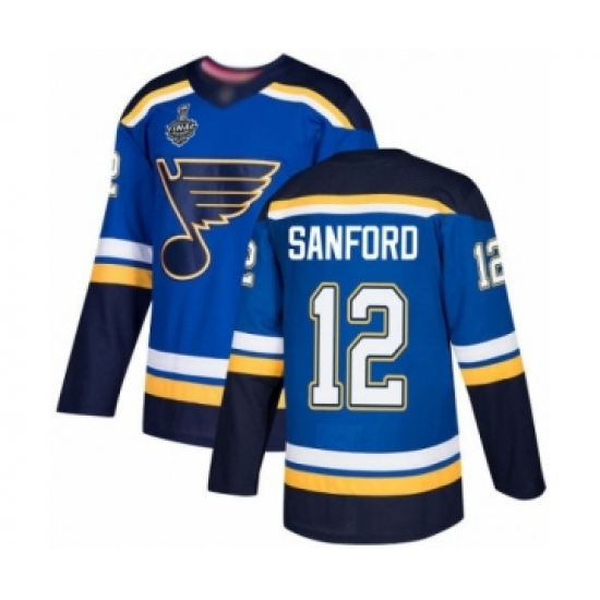 >Men's St. Louis Blues #12 Zach Sanford Authentic Royal Blue Home 2019 Stanley Cup Final Bound Hockey Jersey