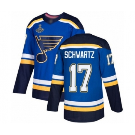 >Men's St. Louis Blues #17 Jaden Schwartz Authentic Royal Blue Home 2019 Stanley Cup Champions Hockey Jersey