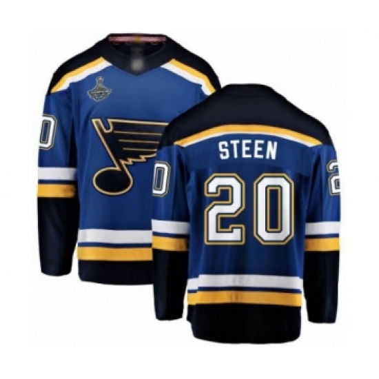 >Men's St. Louis Blues #20 Alexander Steen Fanatics Branded Royal Blue Home Breakaway 2019 Stanley Cup Champions Hockey Jersey