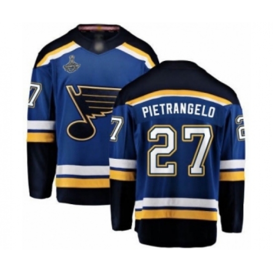 >Men's St. Louis Blues #27 Alex Pietrangelo Fanatics Branded Royal Blue Home Breakaway 2019 Stanley Cup Champions Hockey Jersey