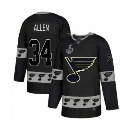 Men's St. Louis Blues #34 Jake Allen Authentic Black Team Logo Fashion 2019 Stanley Cup Final Bound Hockey Jersey