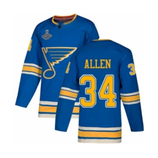 Men's St. Louis Blues #34 Jake Allen Authentic Navy Blue Alternate 2019 Stanley Cup Champions Hockey Jersey