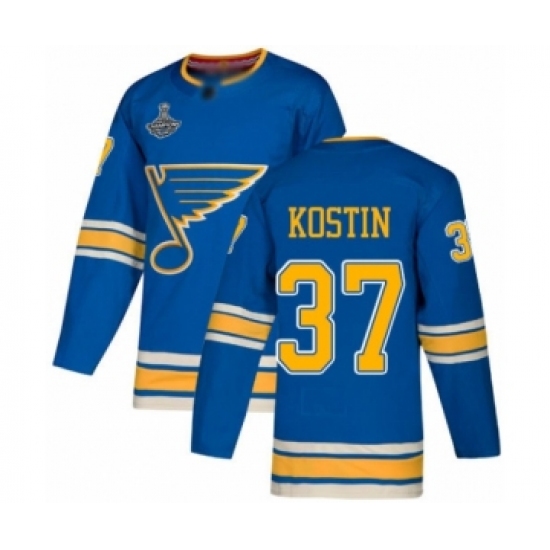 >Men's St. Louis Blues #37 Klim Kostin Authentic Navy Blue Alternate 2019 Stanley Cup Champions Hockey Jersey