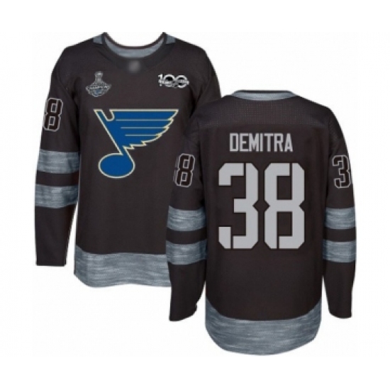 >Men's St. Louis Blues #38 Pavol Demitra Authentic Black 1917-2017 100th Anniversary 2019 Stanley Cup Champions Hockey Jersey