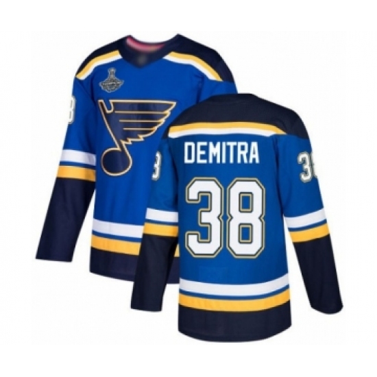 Men's St. Louis Blues #38 Pavol Demitra Authentic Royal Blue Home 2019 Stanley Cup Champions Hockey Jersey