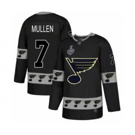 Men's St. Louis Blues #7 Joe Mullen Authentic Black Team Logo Fashion 2019 Stanley Cup Final Bound Hockey Jersey