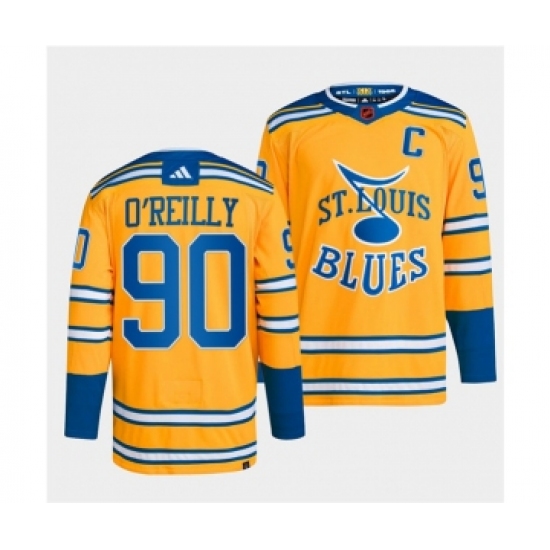 >Men's St. Louis Blues #90 Ryan O'Reilly Yellow 2022-23 Reverse Retro Stitched Jersey