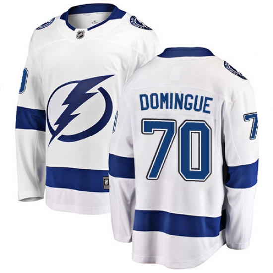 Men's Tampa Bay Lightning #70 Louis Domingue Fanatics Branded White Away Breakaway NHL Jersey