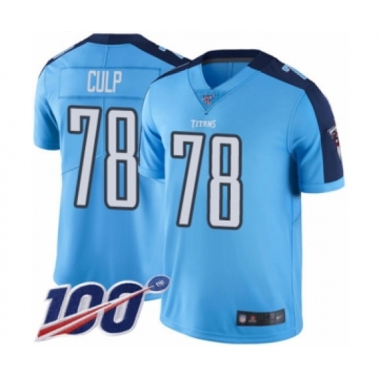 >Men's Tennessee Titans #78 Curley Culp Limited Light Blue Rush Vapor Untouchable 100th Season Football Jersey