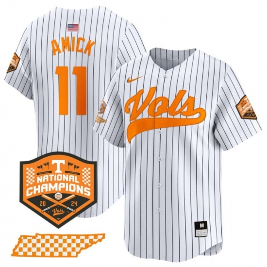 Men's Tennessee Volunteers #11 Billy Amick White Pinstripe 2024 Champions Vapor Limited Stitched Jersey